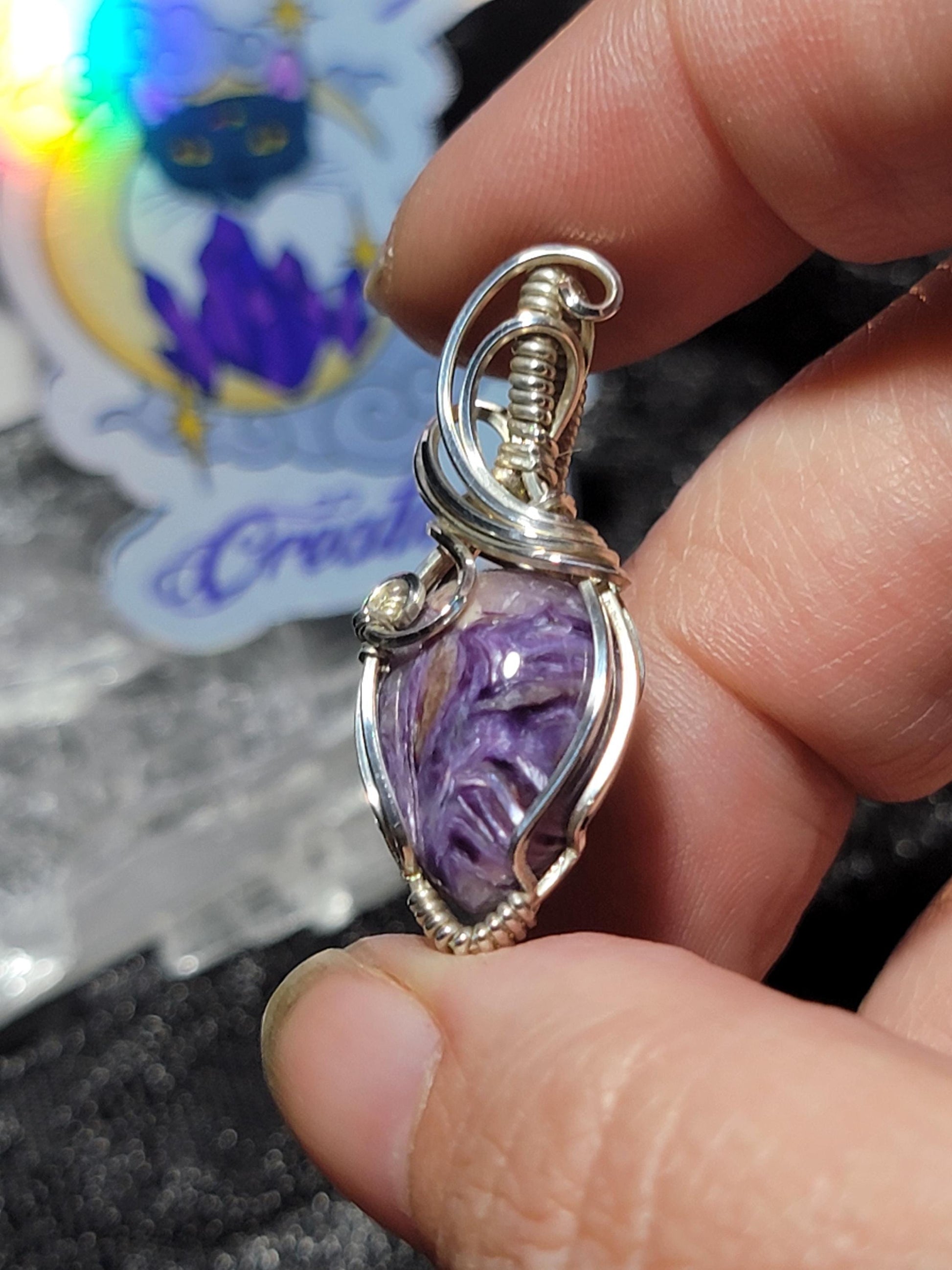 Charoite: -Teaches to live in the “now” -Facilitates acceptance and insight -Opens the Heart chakra and helps love be expressed freely and clearly -Provides emotional and spiritual healing on all levels -Opens the 3rd eye to access knowledge in dream state -Transmutes negative energy into positive -Helps face fear so it may be released