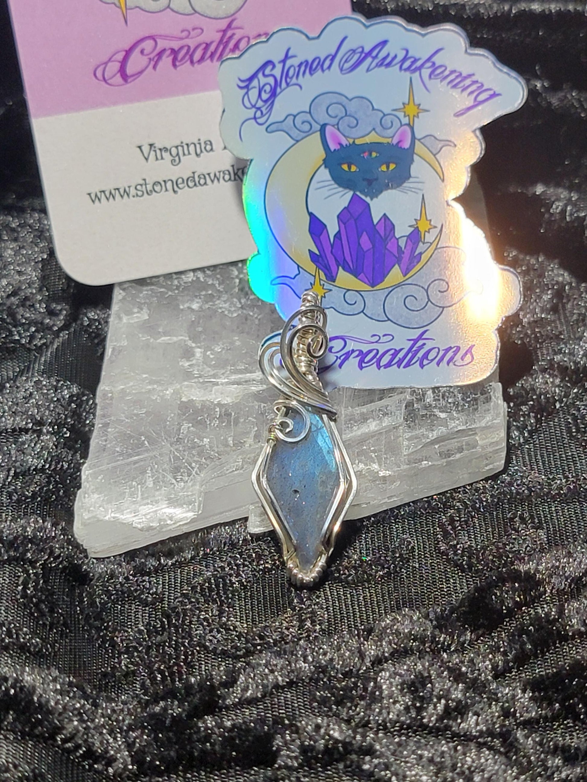Beautiful blue flash labradorite wrapped by hand in sterling silver