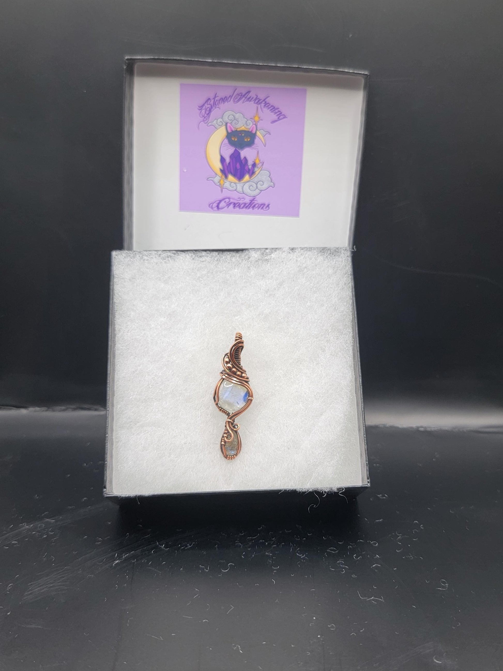 Rainbow Moonstone w/ Labradorite in Antiqued Copper